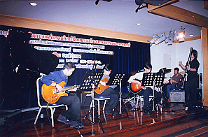 The owner of Suppakarn Music school playing keitar.